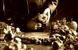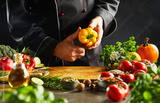 Chef slicing a fresh yellow sweet pepper