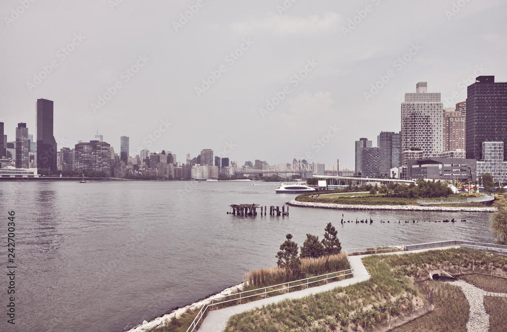 New York City skyline, color toning applied, USA.