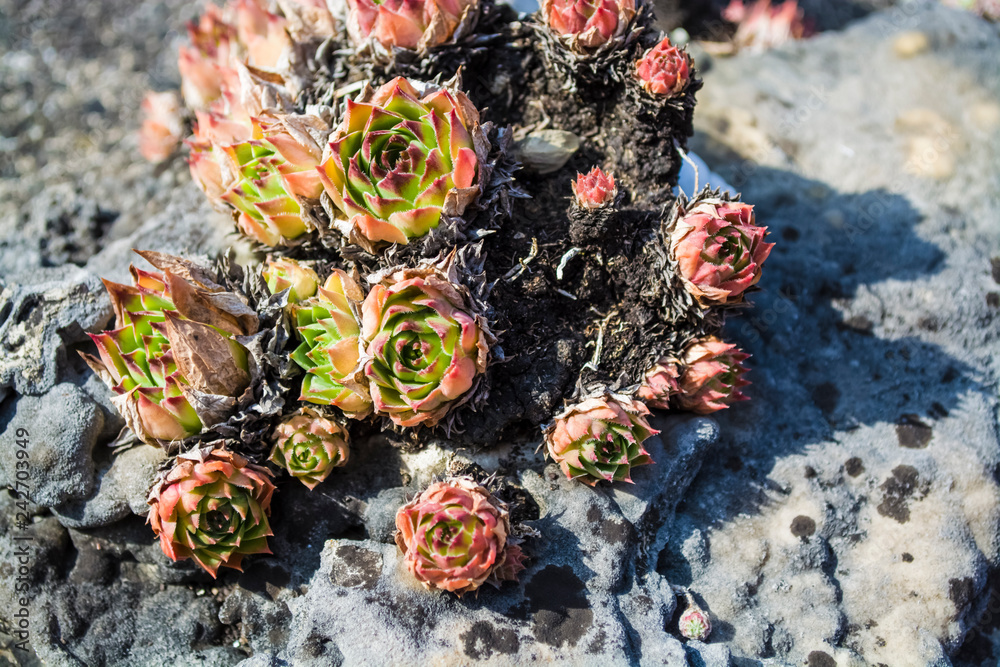 Decorative green flower for design of a landscape. Stone rose. Cactus. Shell of a snail. Dendrarium. Succulent.