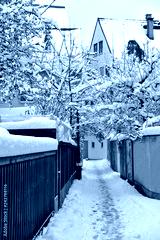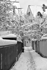 verschneiter fußweg in der stadt