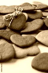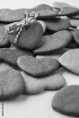 Heart shaped cookie decorated as gift over a bunch of cookies.