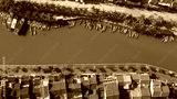 Aerial view panorama of Hoi An old town or Hoian ancient town. Royalty high-quality free stock photo image top view of Hoai river and boat traffic Hoi An. Hoi An is the most popular travel in Vietnam