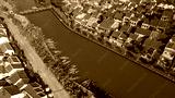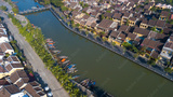 Aerial view panorama of Hoi An old town or Hoian ancient town. Royalty high-quality free stock photo image top view rooftop of street walking in Hoi An city. HoiAn city is UNESCO world heritage site