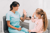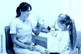 high five doctor with little patient, at medical office. Consultation and medical checkup of the children