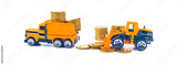 Truck car carry a golden coin stack on white background.