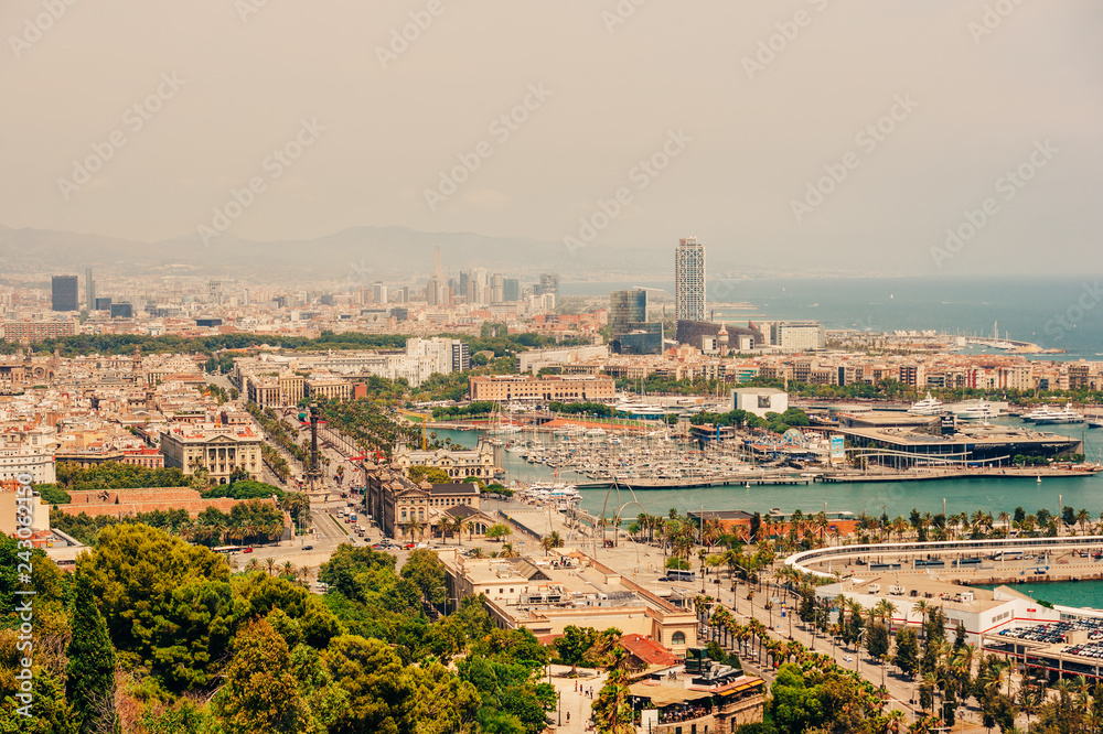 Panorama view of Barcelona from Montjuic hill, Catalonia, Spain