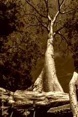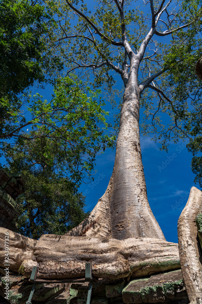 Ruins of Ta Prohm covered by Tetrameles Tree at Angkor, Siem Reap Province, Cambodia