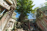 Ruins of Ta Prohm covered by Tetrameles Tree at Angkor, Siem Reap Province, Cambodia