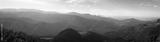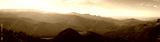 Hazy sun over the mountains peaks