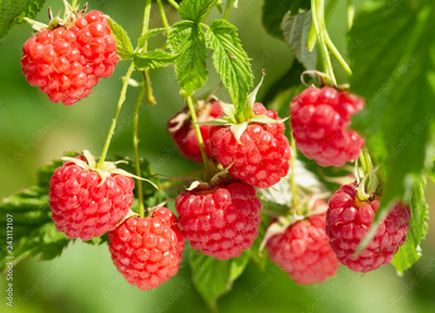 ripe raspberries in a garden