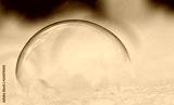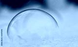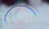 Close-up of a dazzling soap bubble that can be seen transparently in the snow in winter