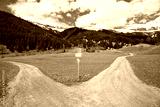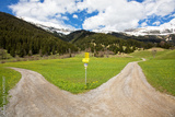 Hiking trails going left and right to various marked routes through the Tyrolean alps in Austria.