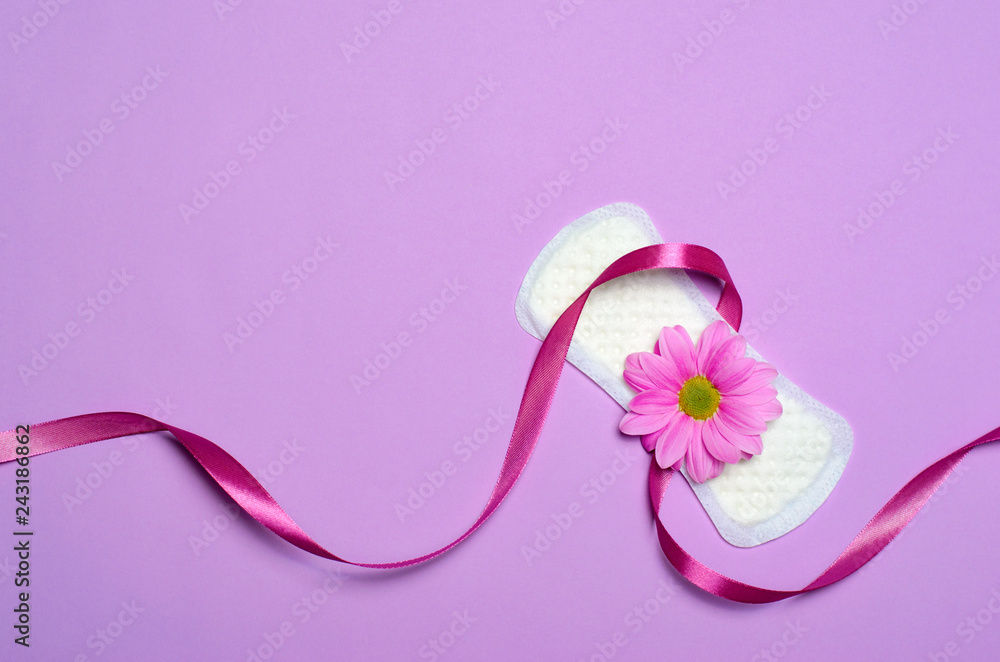 Woman's Sanitary Pad and Gerbera Daisy Flower, Feminine Hygiene Concept