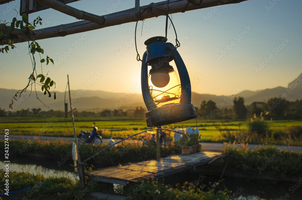 vintage lantern against with beautiful nature