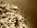 Colorful coral reef on the bottom of tropical sea, underwater landscape.