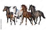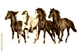 Horse herd run fast in white background