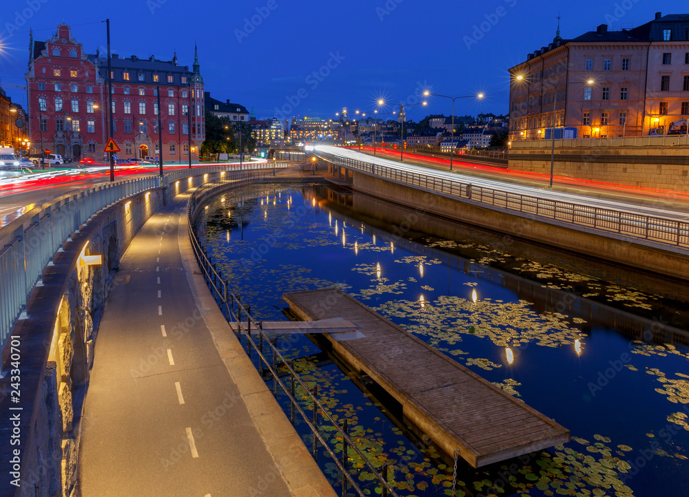 Stockholm. City embankment at sunrise.
