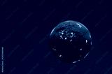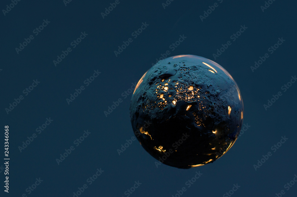 dead burning planet on a dark blue background
