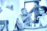 Altenpflegerin hat Spaß mit Gruppe Senioren