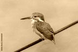A kingfisher who hunts on the banks of a pond