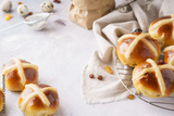Homemade hot cross buns for breakfast. Sweet Easter treats.