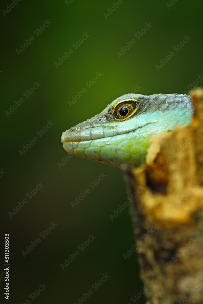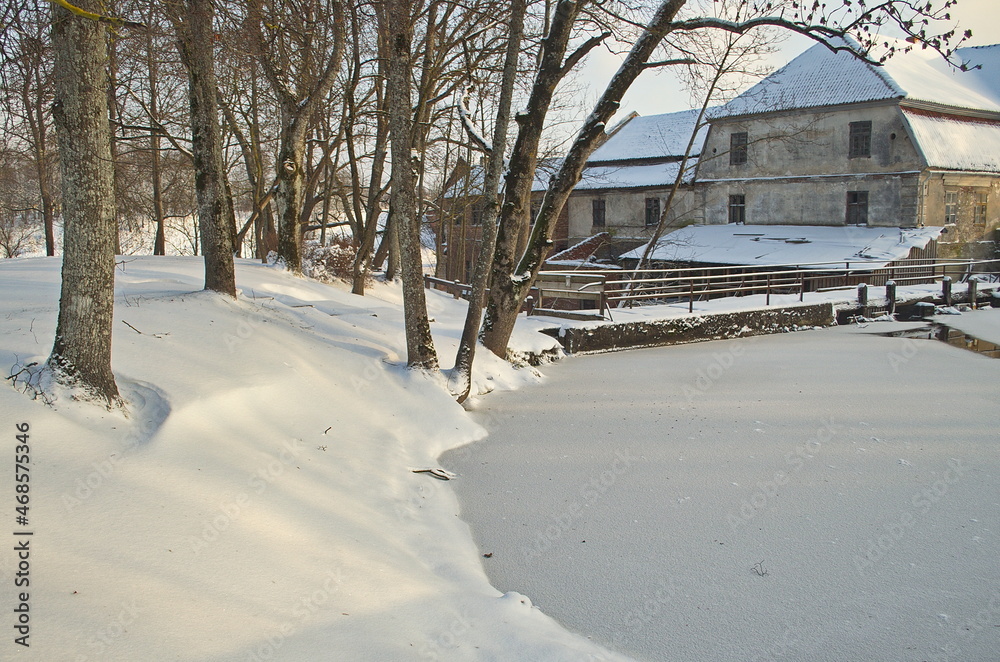 Outdoor close up portrait of young beautiful fashionable woman with afro hair , wearing fur coat in winter park. Winter fashion, Christmas holidays concept.