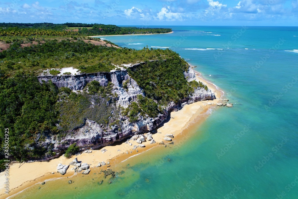 Aerial view of a paradise beach with crystal water. Fantastic landscape. Great beach view. Trancoso, Bahia, Brazil