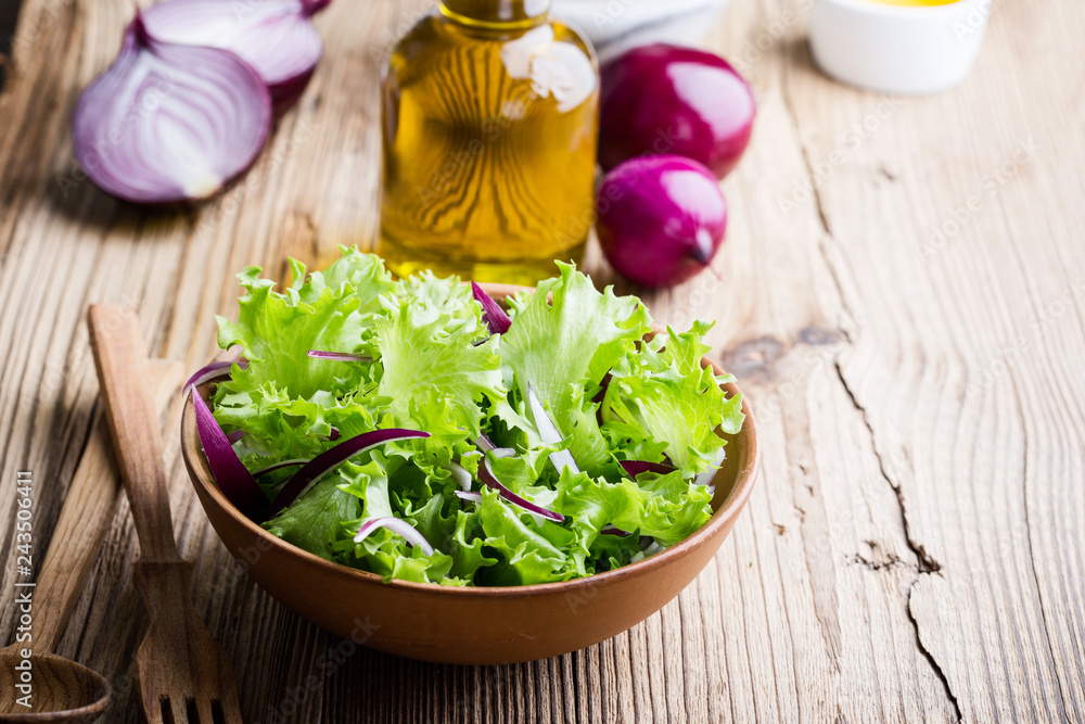 Fresh green leaf vegetable salad, plant-based healthy meal