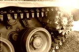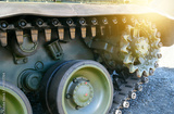 tank caterpillars close-up at sunset of the departing hot day after a long battle in the desert