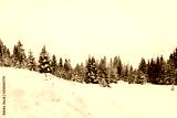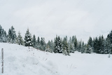 Fir trees covered with snow. Beautiful pine tree forest in winter