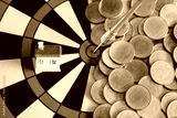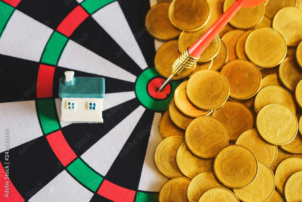 Small house on gold coin money,Real estate business concept.