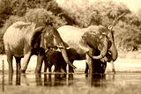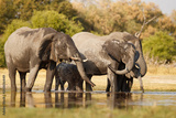Amazing african elephants. Elephants family bathing in the lake. Wildlife scene with amazing animals. Dangerous animals. Great tusker in the nature habitat. Loxodonta africana.