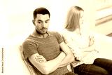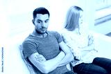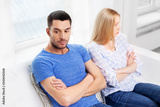 people, relationship difficulties, conflict and family concept - unhappy couple having argument at home