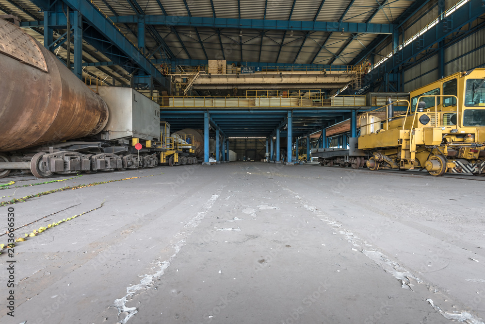 cargo trains stopped in abandoned factory