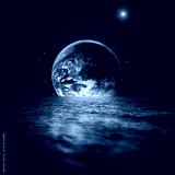 Fantastic space landscape. Planet Earth is reflected in the waters of the ocean with a myriad of stars. Elements of this image furnished by NASA.