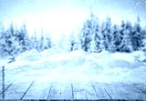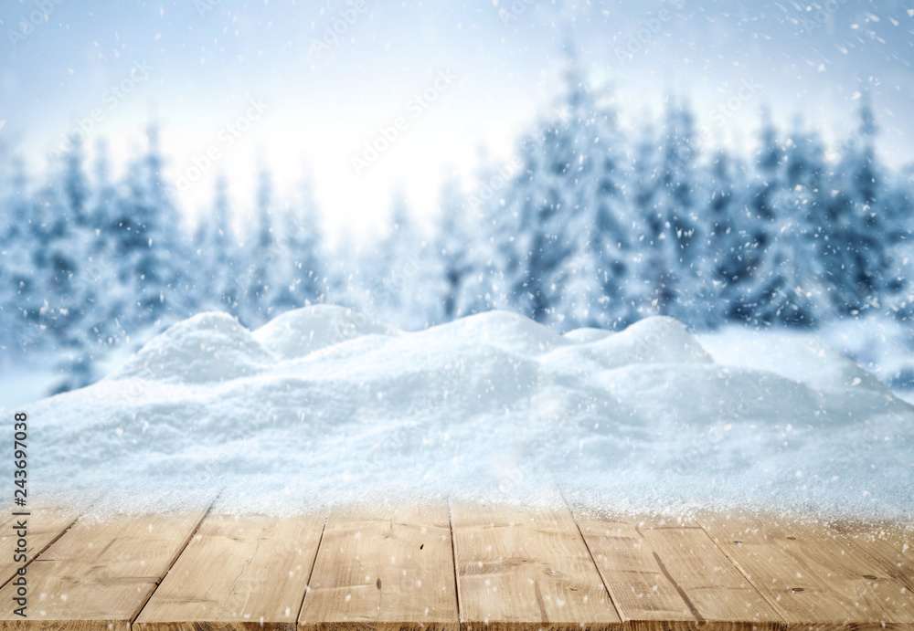 Table background with snow and free space for your decoration