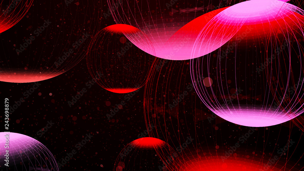 Flying panoramic spheres in outer space. Abstract background with 3d dynamic spheres. Graphic concept for your design. 3D rendering