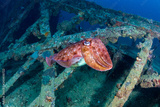 Colorful Cuttlefish on a old underwater shipwreck in a tropical ocean