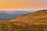 Sunset. Beautiful panoramic view of the Bieszczady mountains in the early autumn, Bieszczady National Park (Polish: Bieszczadzki Park Narodowy), Poland.
