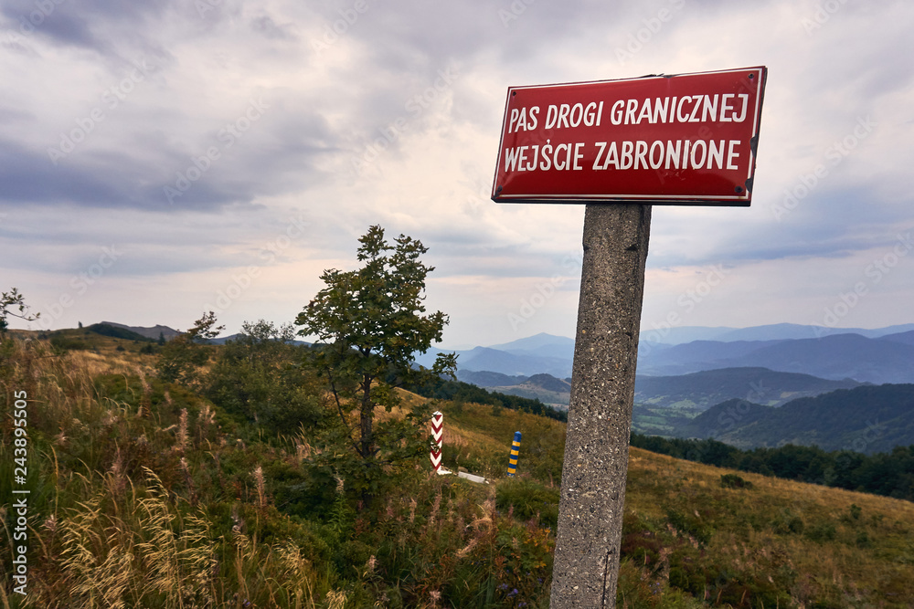 Border between Poland and Ukraine, border posts. The Bieszczady mountains in the early autumn, Bieszczady National Park (Polish: Bieszczadzki Park Narodowy), Poland.