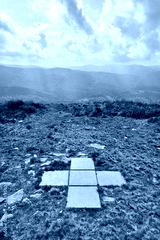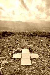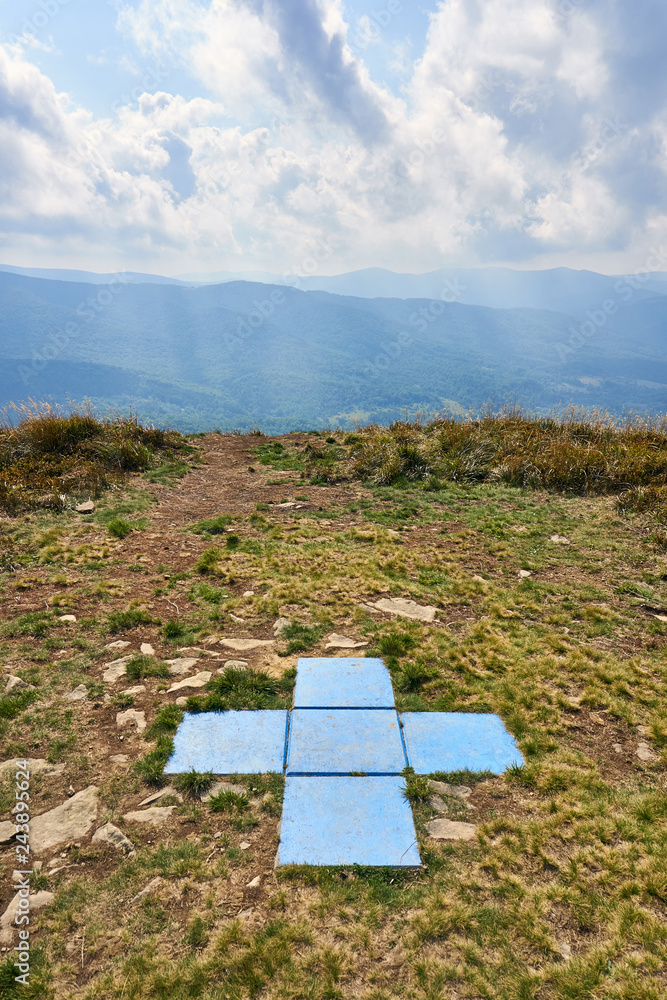 Helicopter landing pad. Beautiful panoramic view of the Bieszczady mountains in the early autumn, Bieszczady National Park (Polish: Bieszczadzki Park Narodowy), Poland.