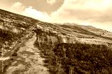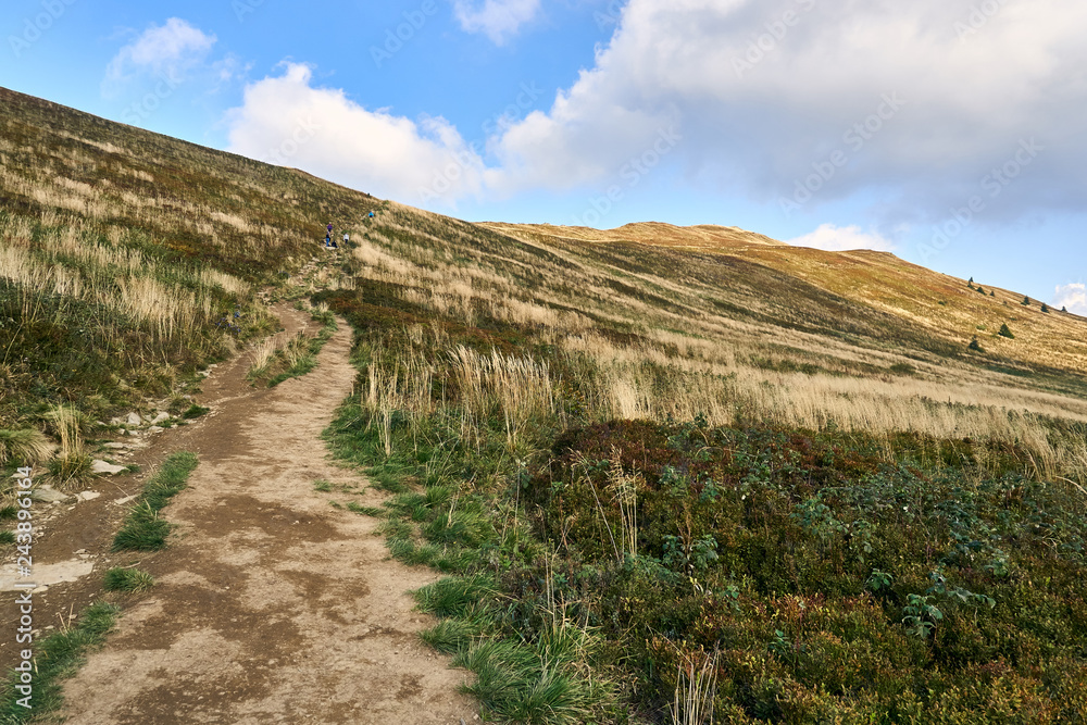 Beautiful panoramic view of the Bieszczady mountains in the early autumn, Bieszczady National Park (Polish: Bieszczadzki Park Narodowy), Poland.