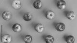 Fruit pattern of red apple on blue background. Flat lay, top view. Pop art design, creative summer concept. Food background.