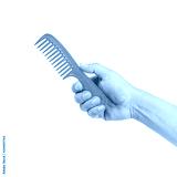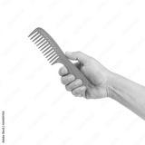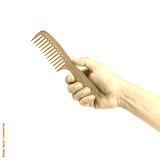 Red comb in hand isolated on white background