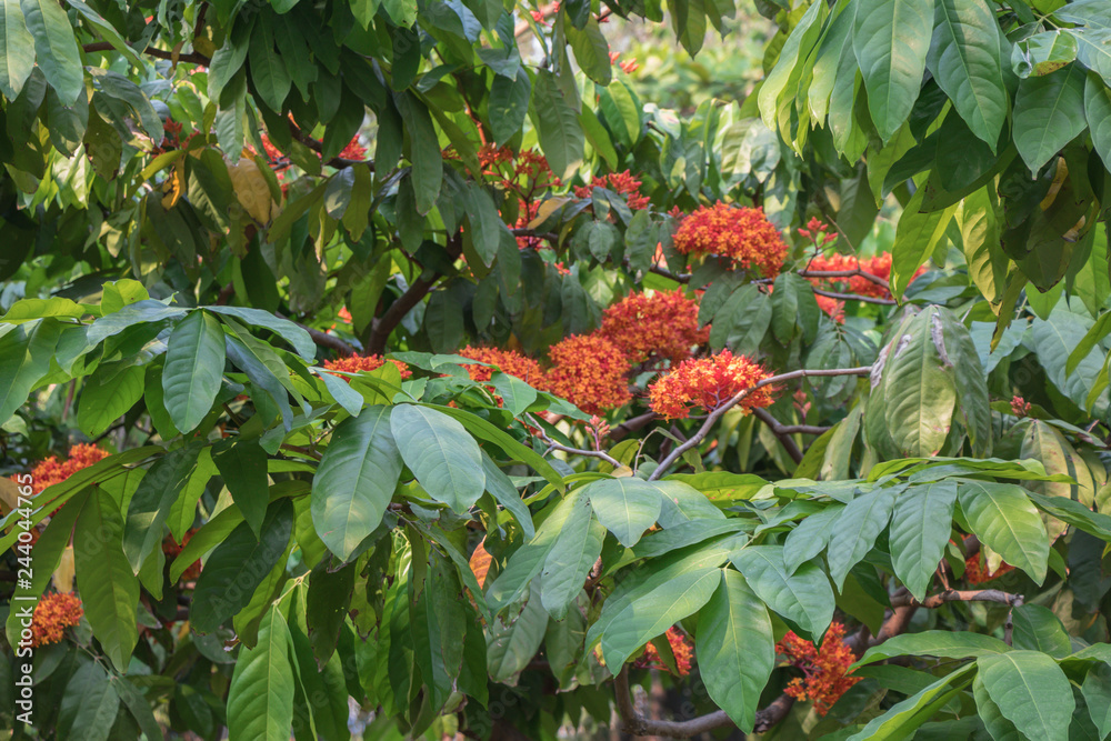 Colorful Saraca asoca Saraca indica Linn or Ashoka flowers blossom.Also known as Ashok or simply Asoca,Asoka tree.