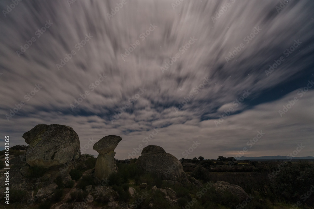 Night landscape with moonlight in the Barruecos Natural Area. Extremadura. Spain.