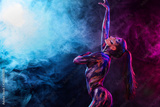 Young woman painted different colors. Inspired dance to music. Body art colorful. An amazing woman with art fashion makeup.