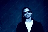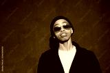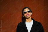 20s teenager cool black African woman with sunglasses in summer with red rustic metal background