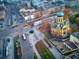 Beautiful panoramic aerial view to Cathedral of St. Mary Magdalene, Warsaw from dron DJI Mavic Air