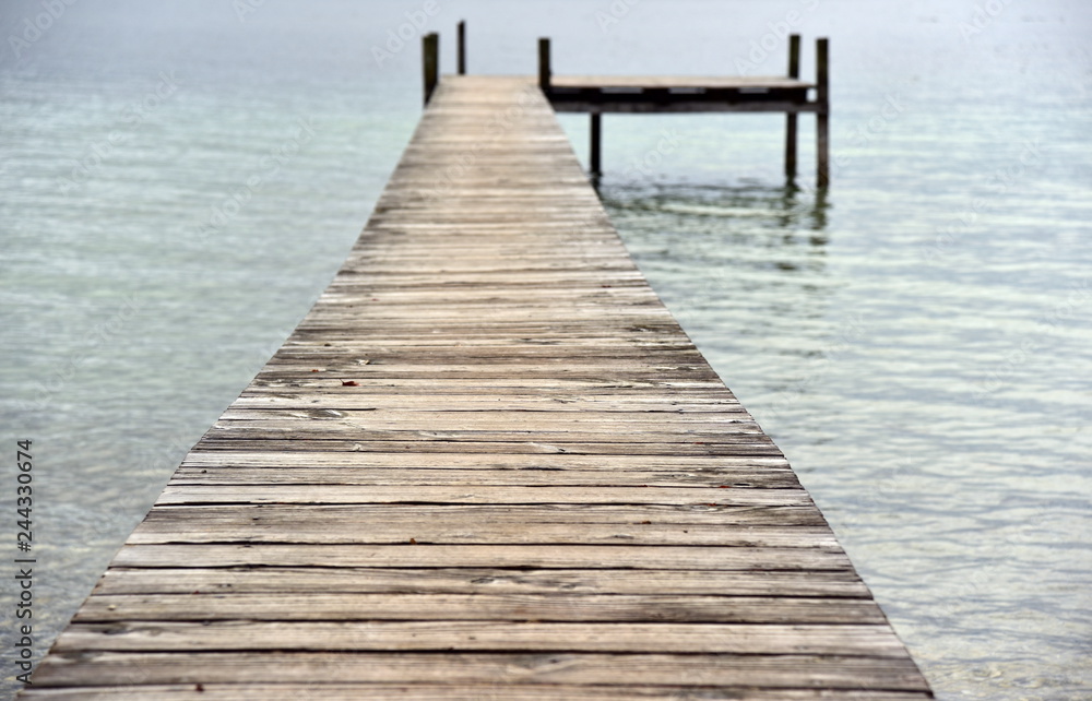 holzssteg führt ins wasser